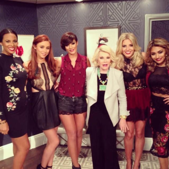 For the rest of the girls' outfits in the photo linked above please check the The Saturdays label.